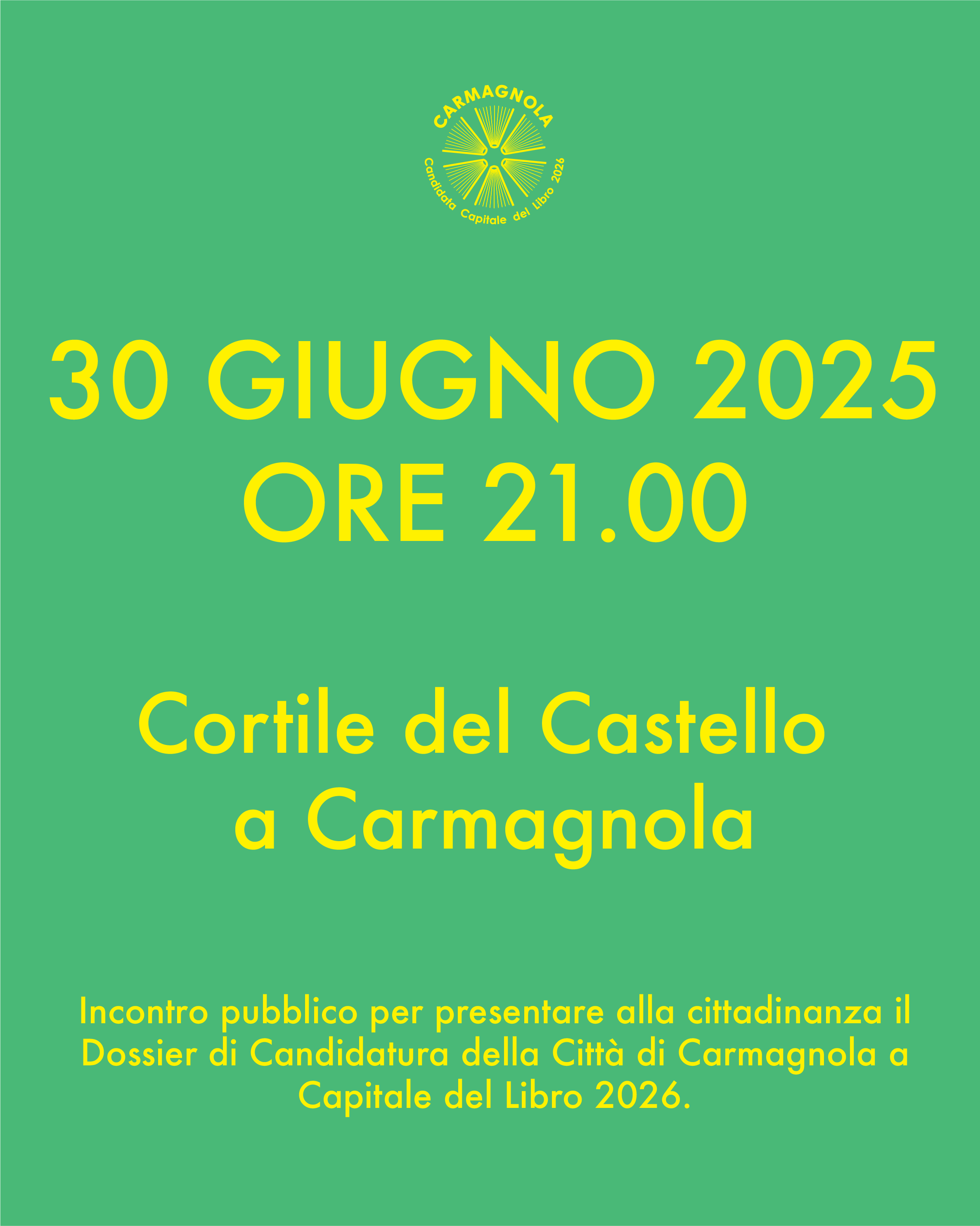 La Città di Carmagnola è ufficialmente candidata al titolo di Capitale del libro 2026, prestigioso riconoscimento promosso dal Ministero della Cultura, e il prossimo 30 giugno sarà presentato pubblicamente il dossier di candidatura, cuore del progetto culturale che ambisce a proiettare Carmagnola tra le protagoniste della promozione della lettura a livello nazionale.