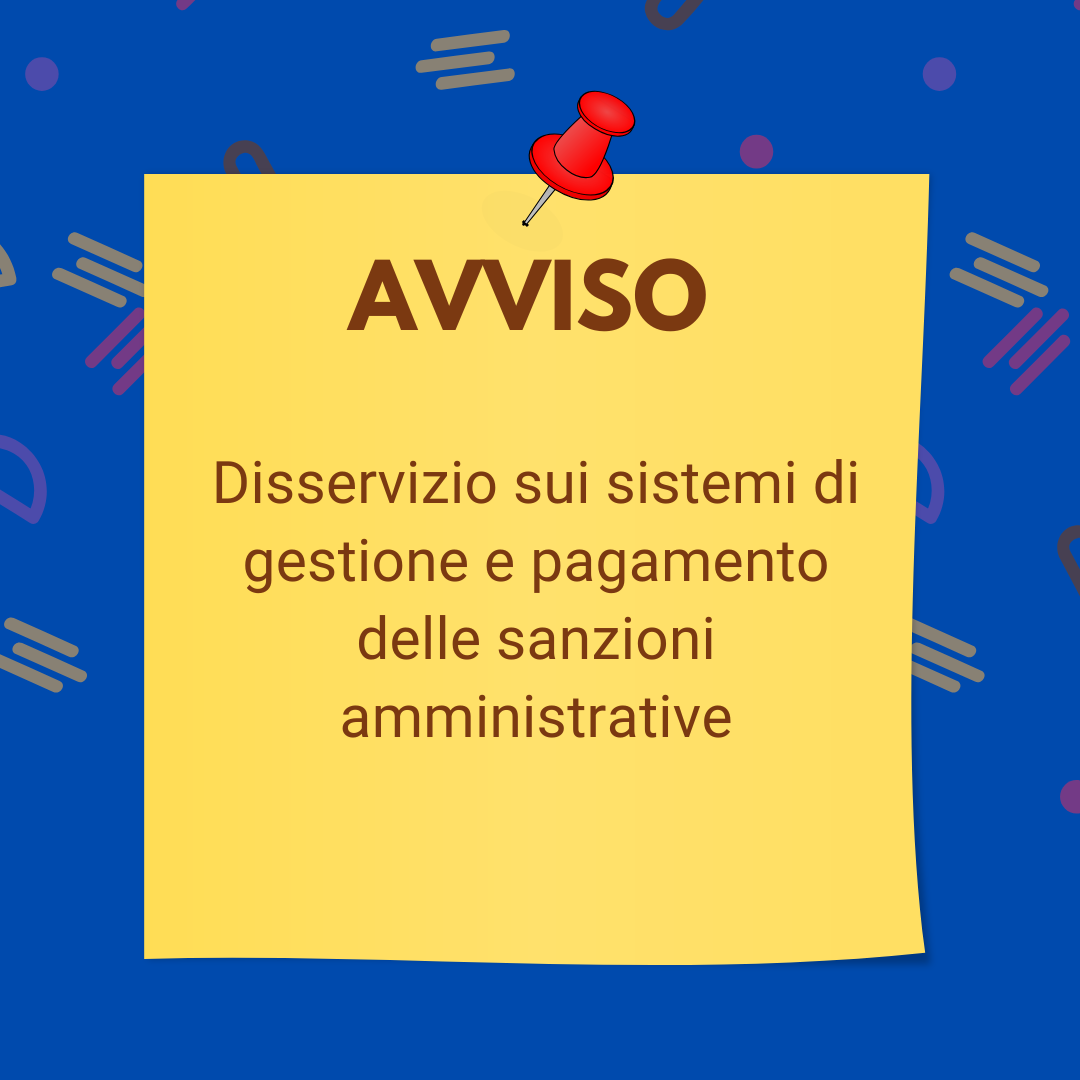 La Città di Carmagnola informa che in questi giorni potrebbero verificarsi disservizi nel pagamento delle sanzioni amministrative a causa di un problema informatico che coinvolge un fornitore esterno.