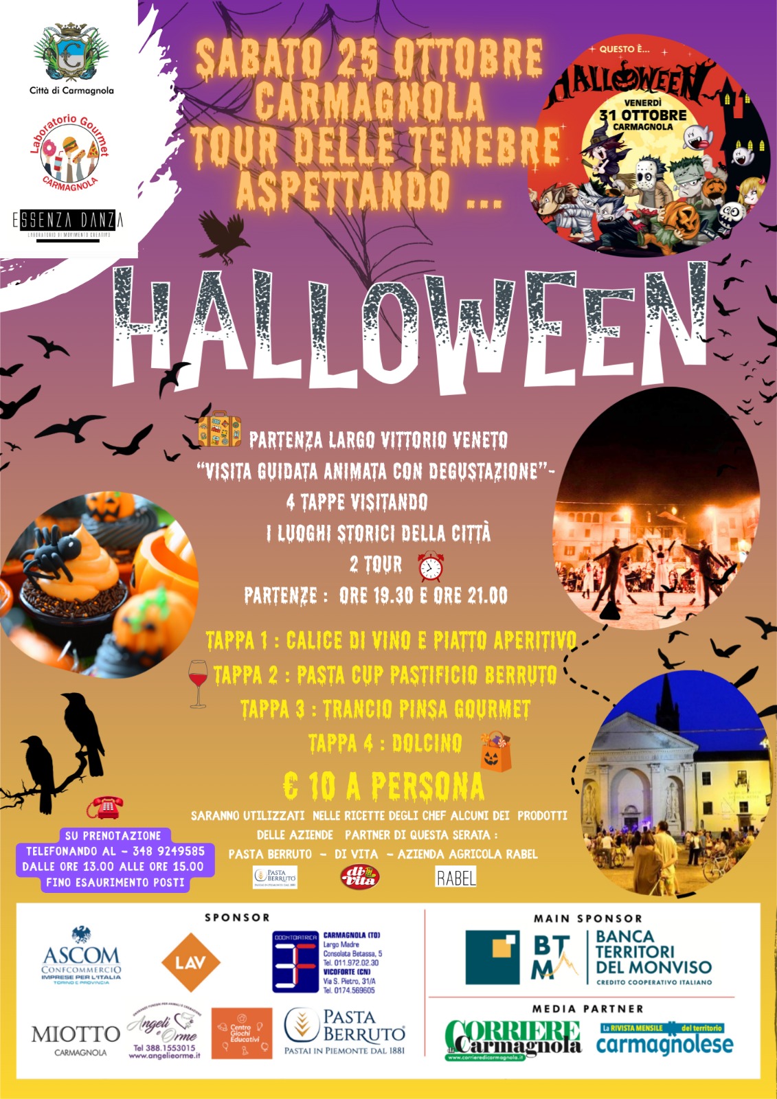 Sabato 25 ottobre, con una speciale anteprima tra laboratori creativi, giochi, presentazioni di libri e uno speciale tour delle tenebre con teatro e degustazioni nel centro cittadino.L’anteprima della manifestazione include anche il “Tour delle Tenebre”, un’esperienza serale inedita per scoprire Carmagnola in chiave teatrale e sensoriale.