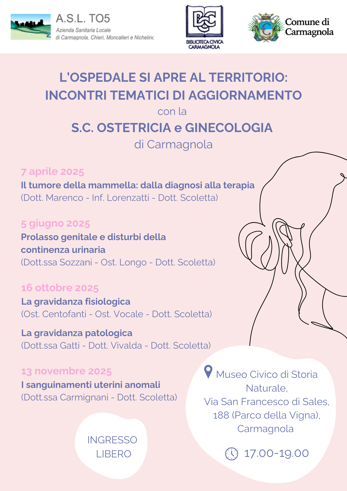 La Biblioteca Civica di Carmagnola, in collaborazione con l’ASL TO5 e il Comune di Carmagnola, propone un ciclo di incontri tematici di aggiornamento a cura del Dipartimento di Ostetricia e Ginecologia dell’Ospedale San Lorenzo.