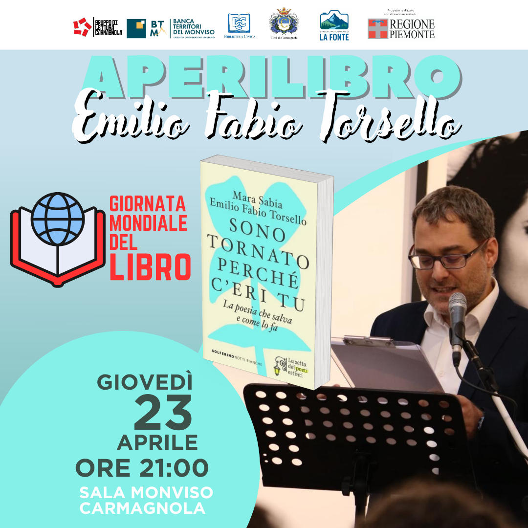 In occasione della Giornata Mondiale del Libro, mercoledì 23 aprile alle ore 21.00, presso la Sala Monviso del Parco Cascina Vigna, è in programma un reading tratto dal libro "Sono tornato perché c’eri tu. La poesia che salva e come lo fa" (Solferino) di Mara Sabia ed Emilio Fabio Torsello, con la presenza di Emilio Fabio Torsello.